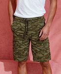 Two swings pockets with coin pocket and two back bellowed pockets with hook and loop fastening. Bellowed pockets to either leg with hook and loop fastening. Elasticated waistband with drawstrings. Gunmetal eyelets and drawstring ends. Fly stitched detailing. Soft finish fabric.